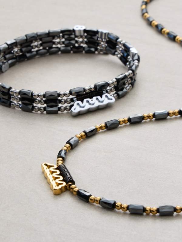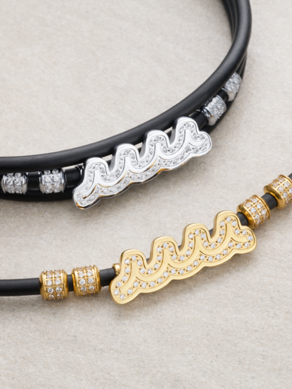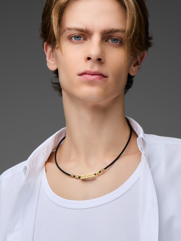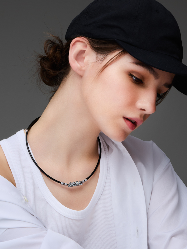 BANDEL×muta Fit Plus Waveのヘッドはmuta MARINEの代表的なモチーフである「ウェーブ」をイメージ。muta MARINEの「M」と自然の息吹とも言われる「波」を融合させたシンボルマークを磁気ネックレスに採用することで、muta MARINEのコンセプトである船乗りたちに愛される機能性と街でも活躍するファッション性の両立を実現しました。Wave Customではさらに、ヘッドにジルコニアを散りばめることで煌めきをプラス。圧倒的な存在感を示します。