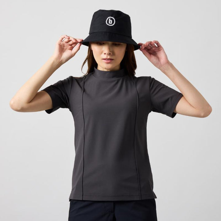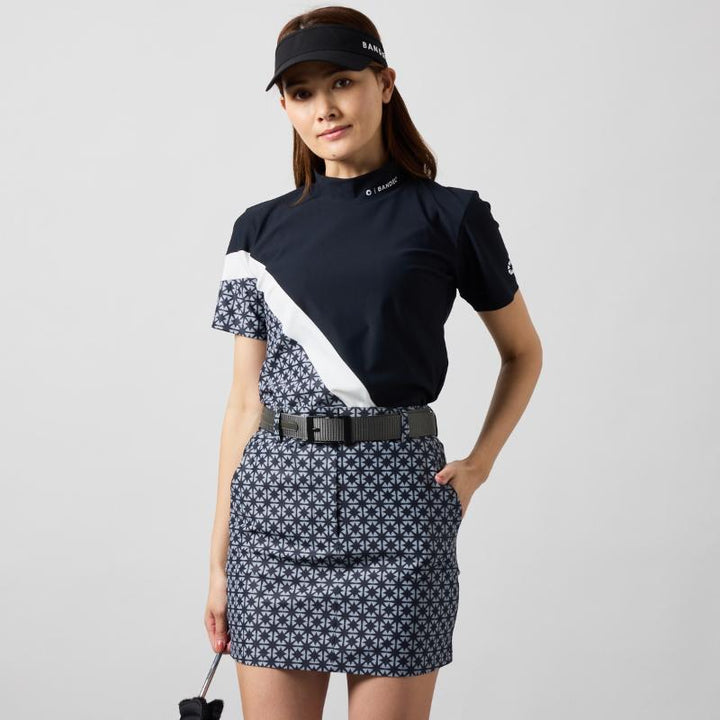 WOMENS BICOLOR PATERN S/S MOCK NECK SHIRTS