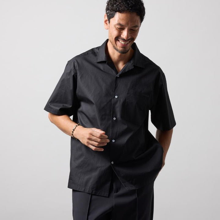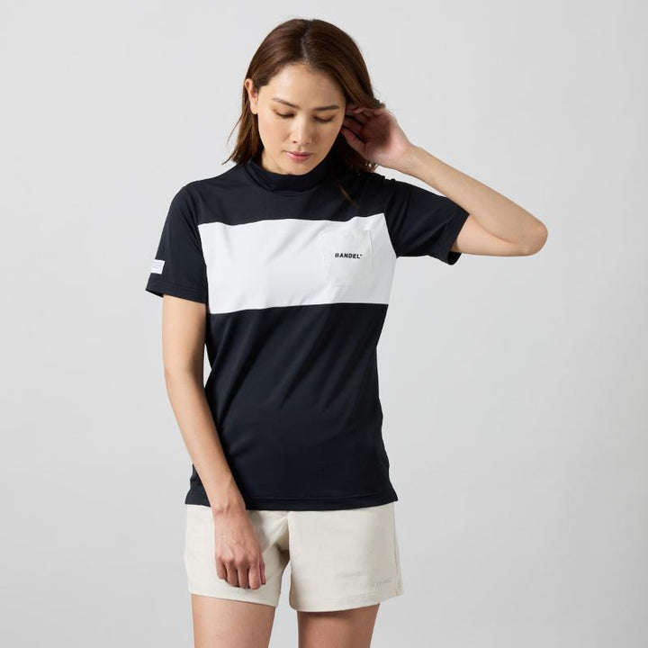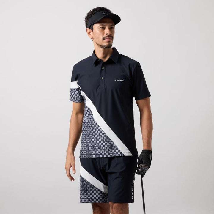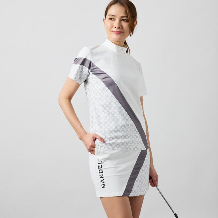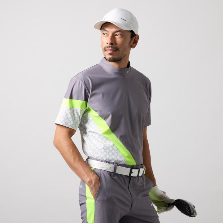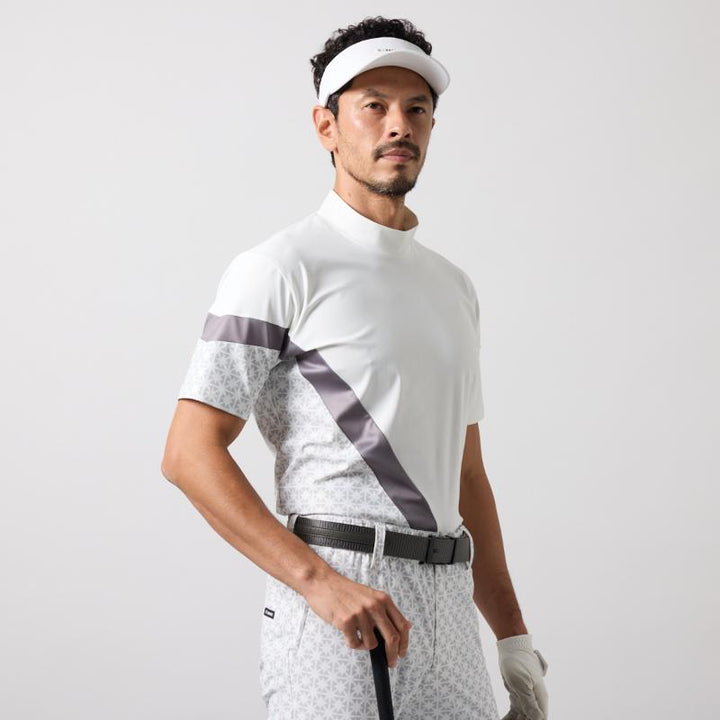 BICOLOR PATERN S/S MOCK NECK SHIRTS