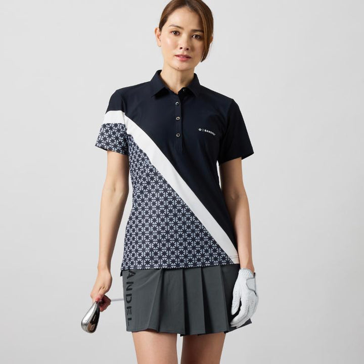 WOMENS BICOLOR PATERN S/S LOOSE POLO SHIRTS